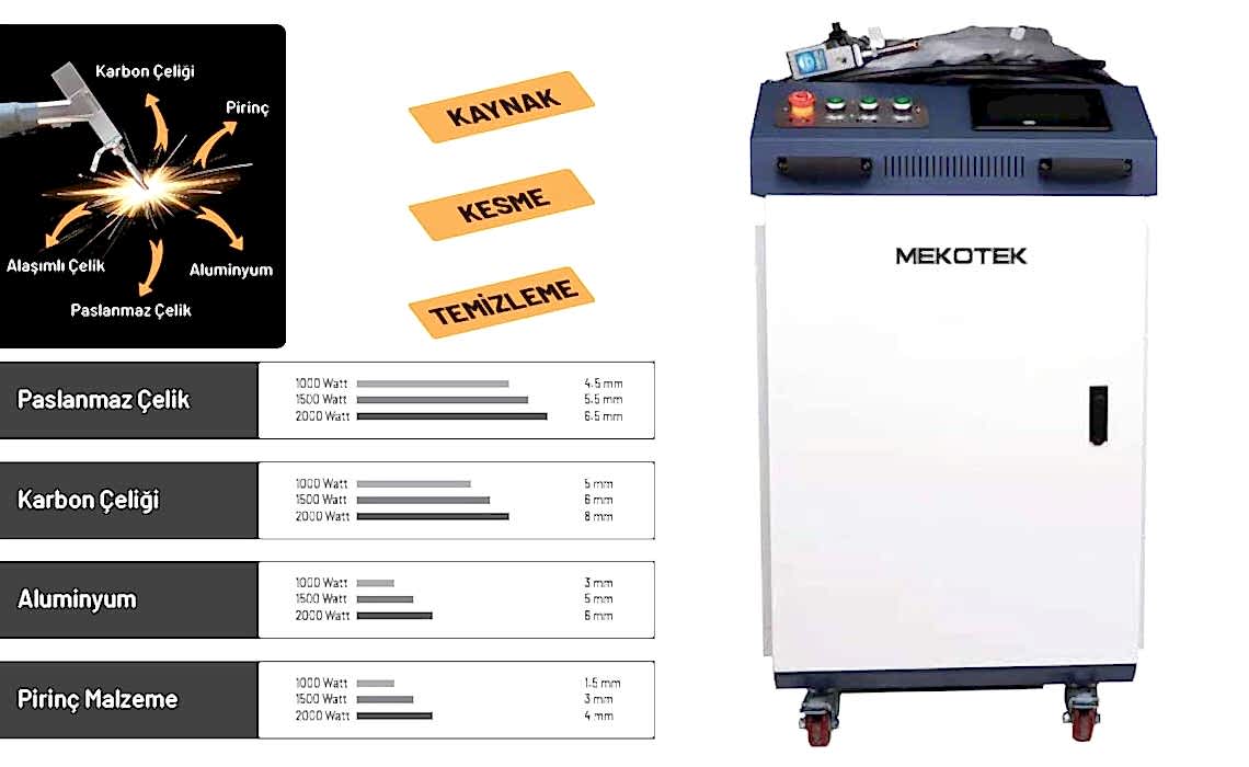| Kalınlık | 500 Watt | 1000 Watt | 1500 Watt | 2000 Watt |